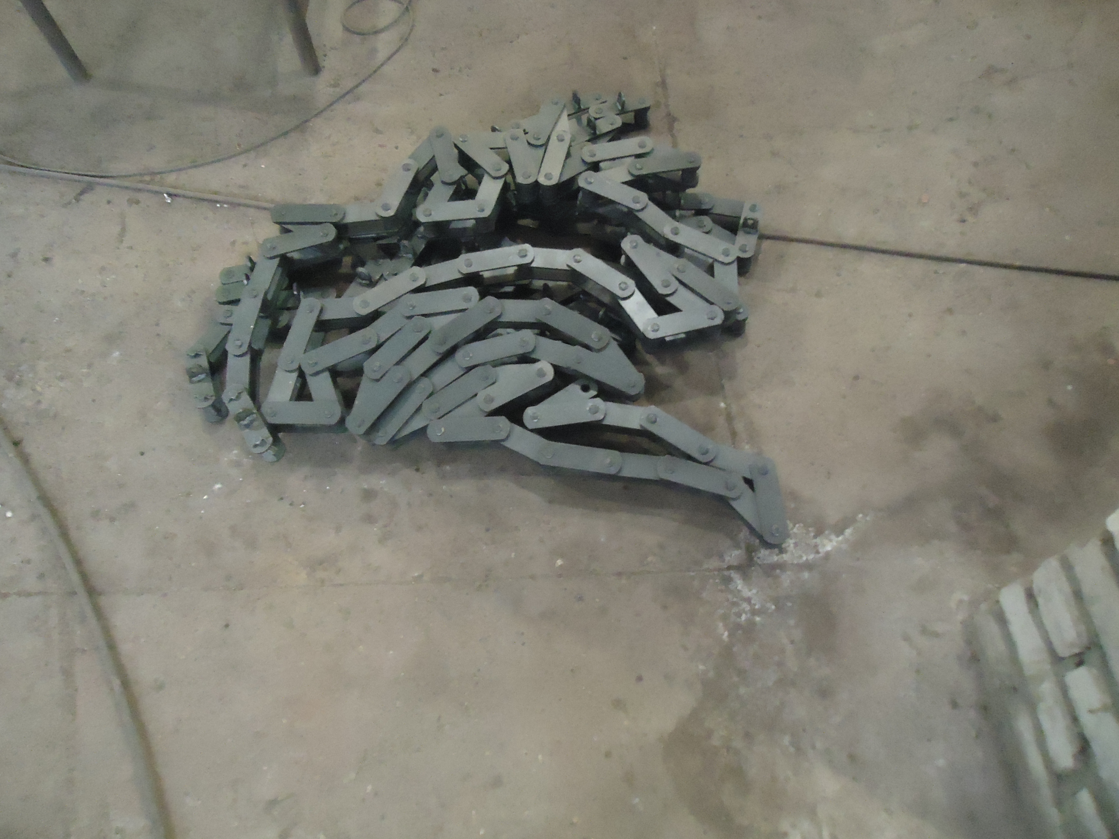 Цепь является «фундаментом» колосникового полотна: поддерживает его и обеспечивает натяжение. На цепи также устанавливаются колосниковые держатели. При движении полотна колосники поворачиваются. Так происходит очистка топочной камеры от золы и шлака.