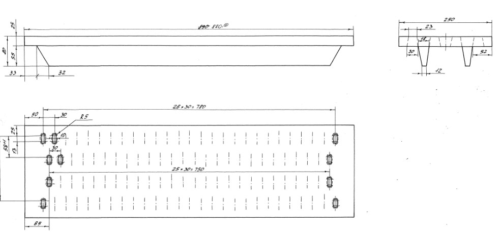 Колосник 950x250, как самостоятельная деталь, представляет собой чугунную балку, а в собранном виде — колосниковую решетку с отверстиями между звеньями (балками). Расстояния между колосниками не должно быть больше 40% от общего размера решетки. Сама конструкция колосниковой решетки напрямую зависит от мощности котельного оборудования и используемого вида топлива.