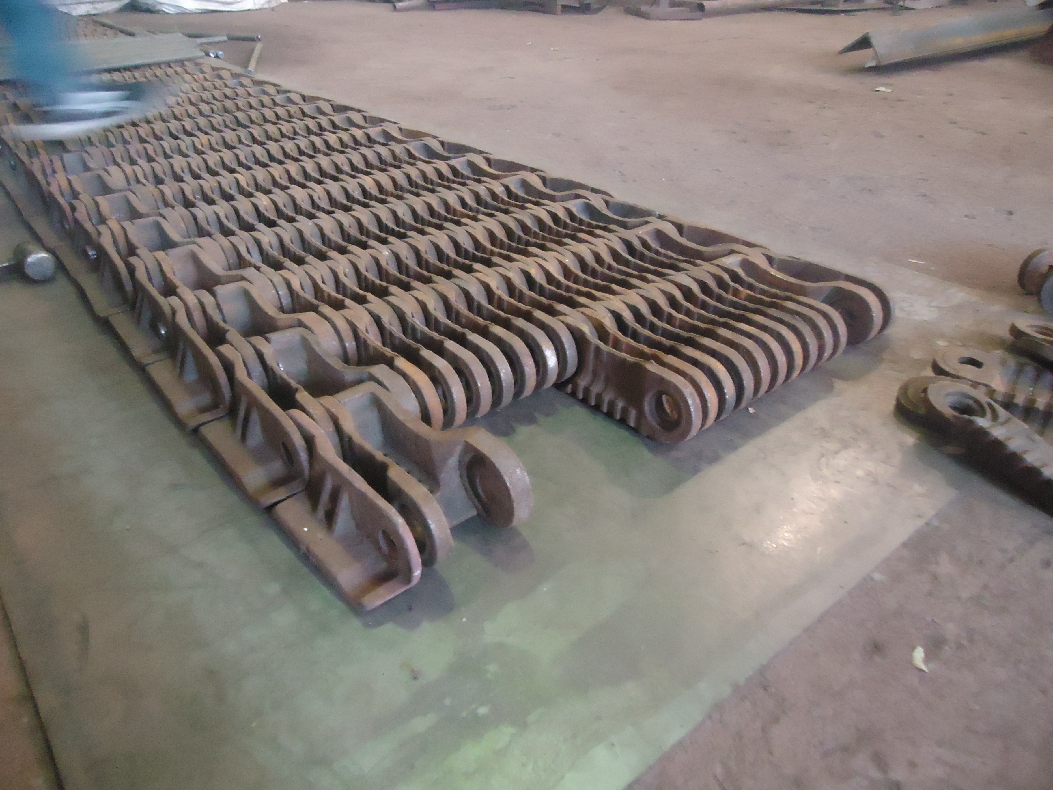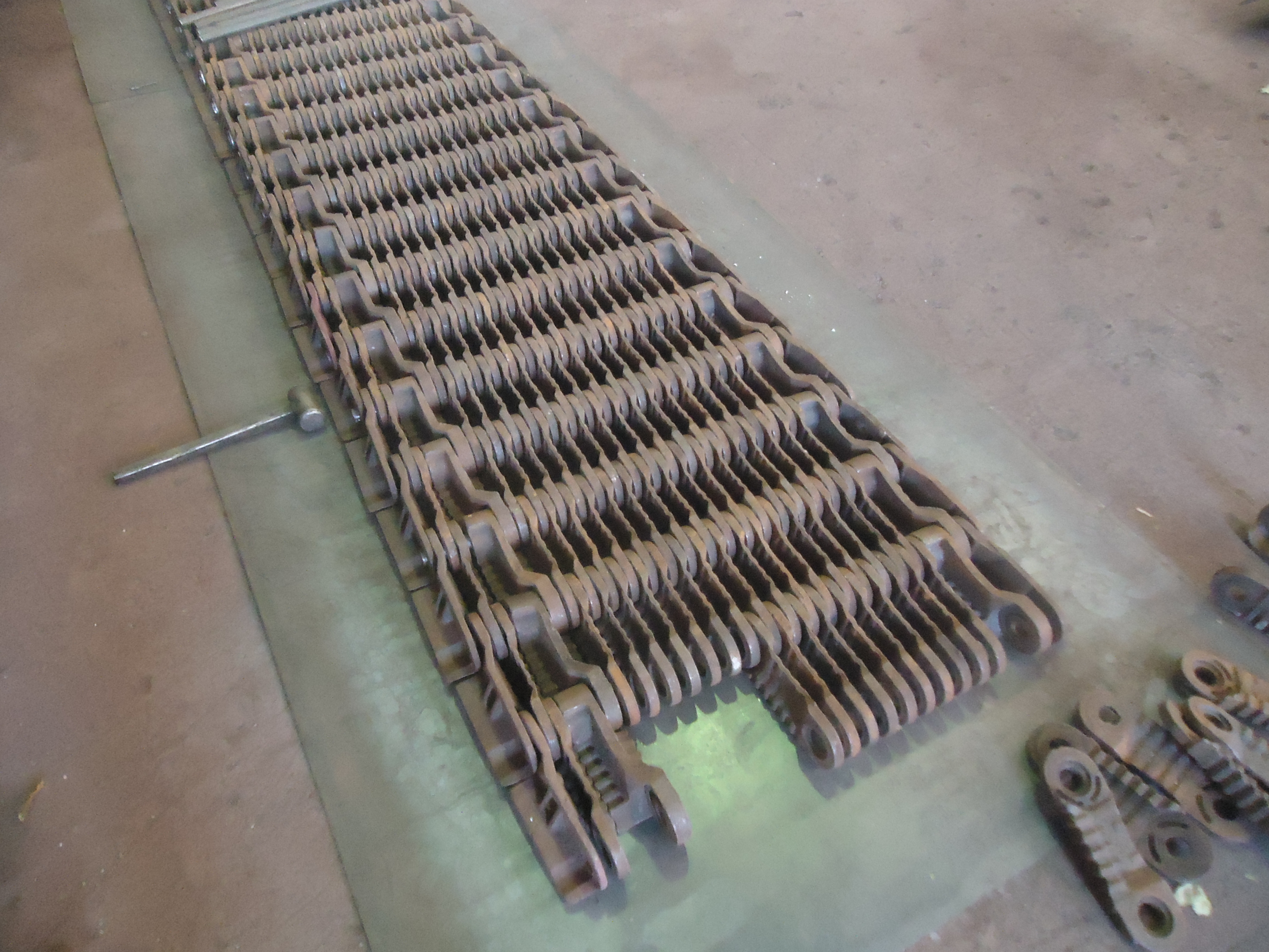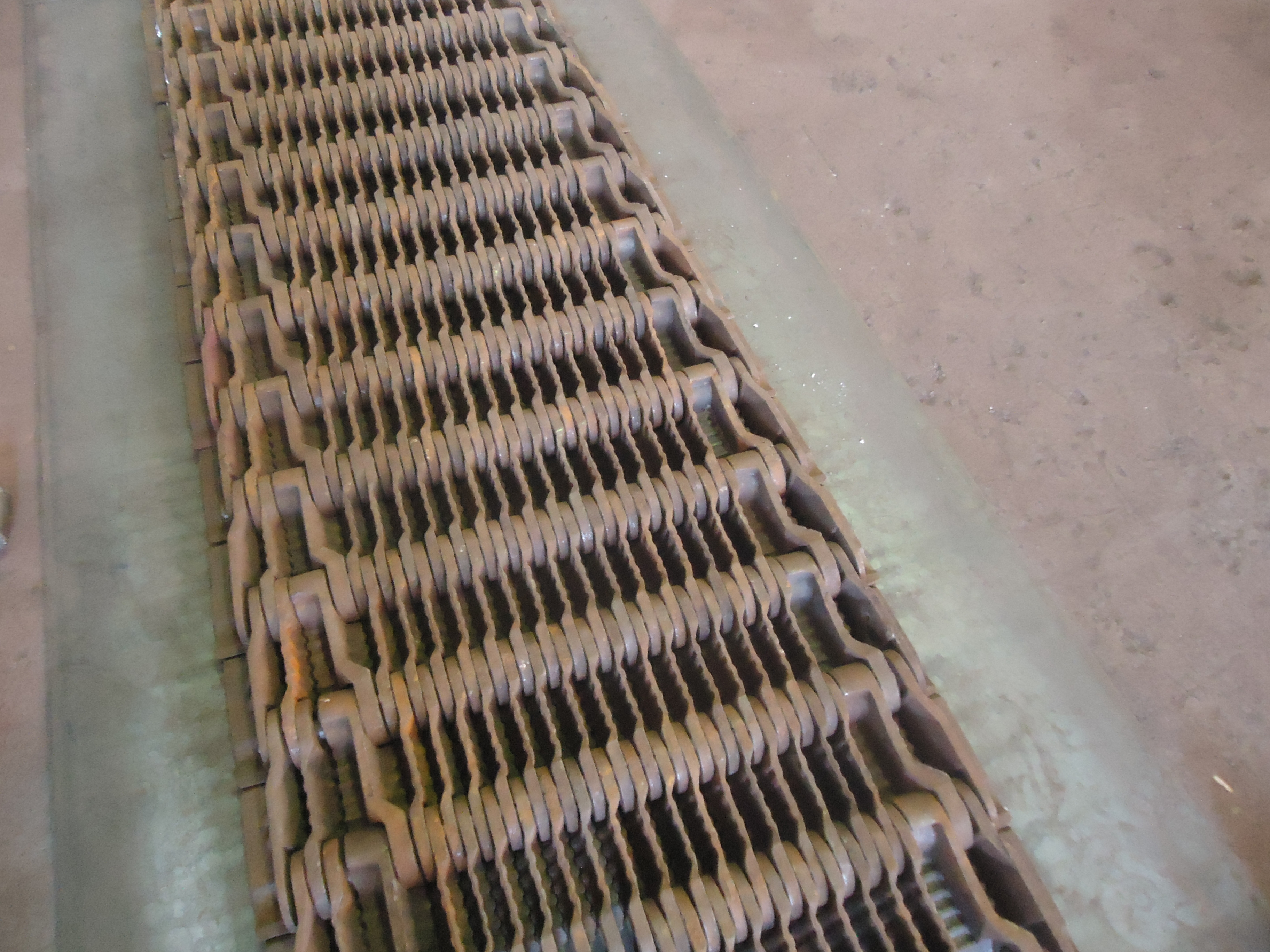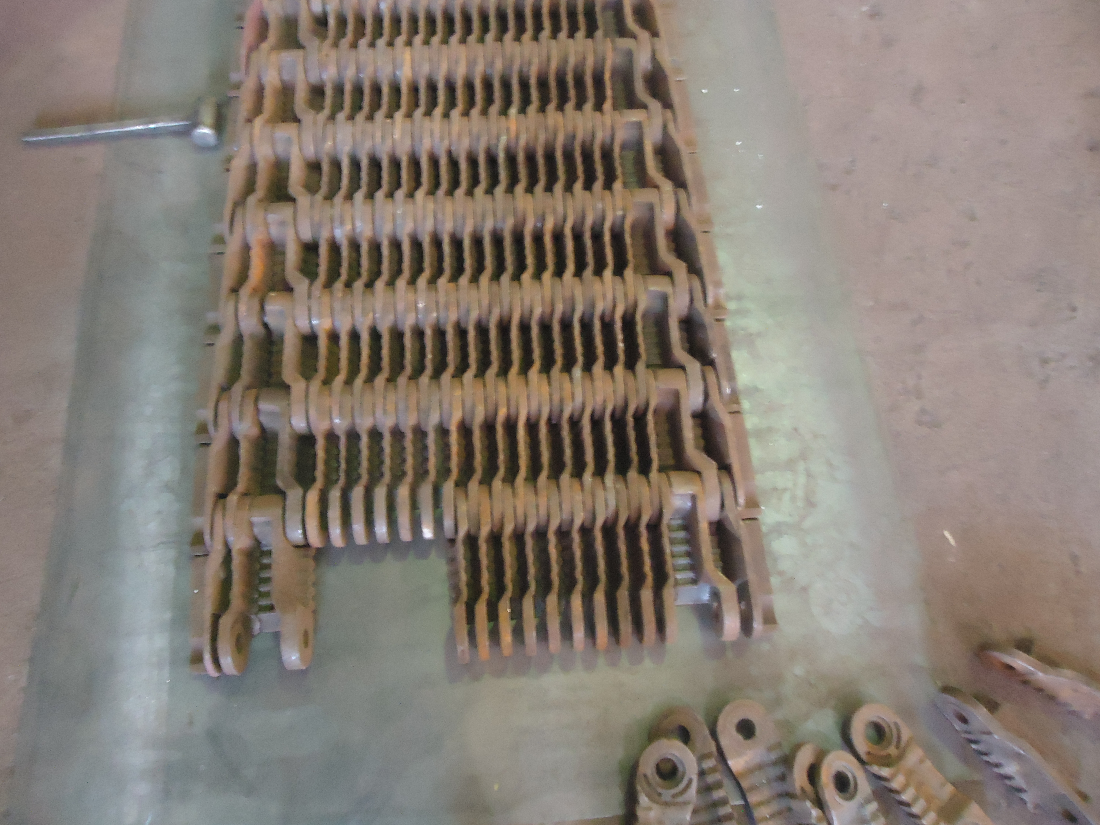 Полотно топки в сборе – это система соединенных между собой колосников разного типа (крайних, ведущих, ведомых). Каждый элемент отливается из жаропрочного чугуна. Колосники нанизываются на соединительные стержни. А для крепления друг к другу имеют небольшие зубья. Конструкция получается не плотная – между деталями образуются щели, через которые подается воздух, и сбрасывается шлак.