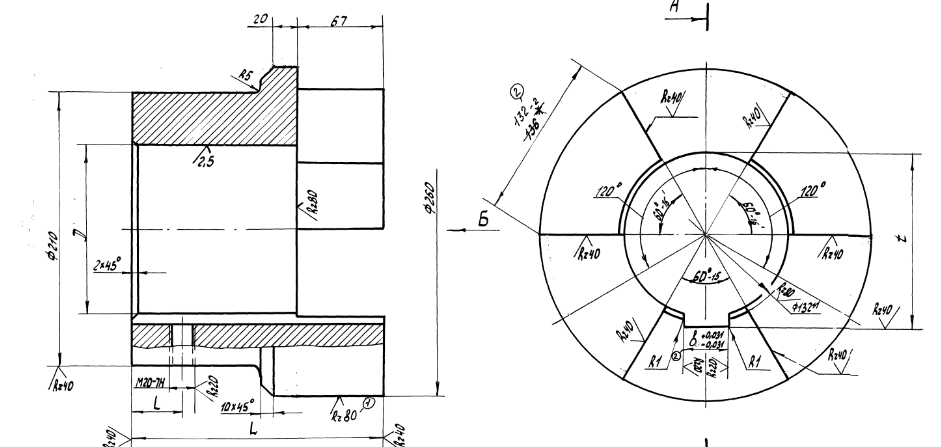 Полумуфта (00.5684.001-01) – чугунная отливка сложной формы, оснащенная центральным отверстием для закрепления на валу.
