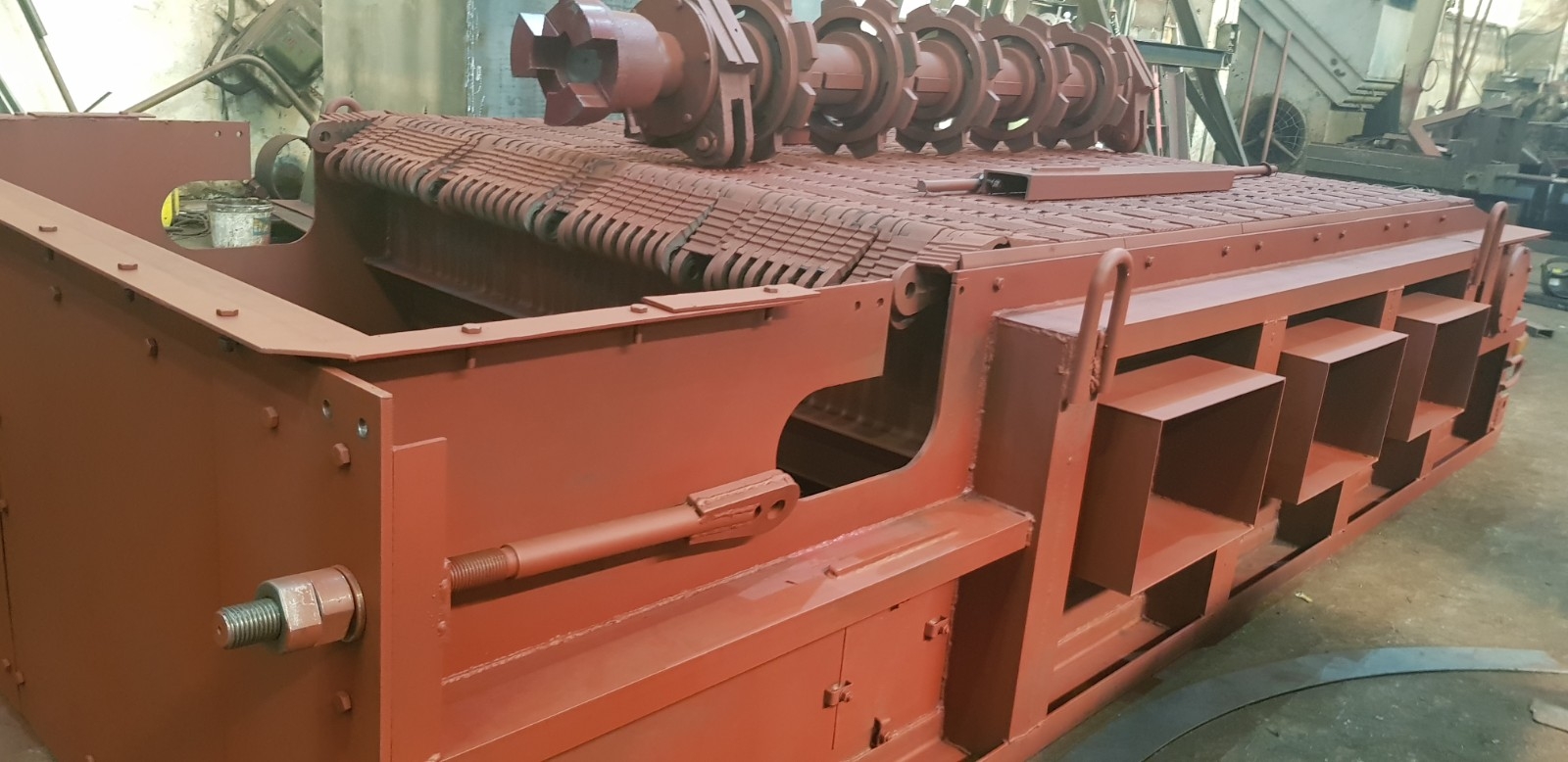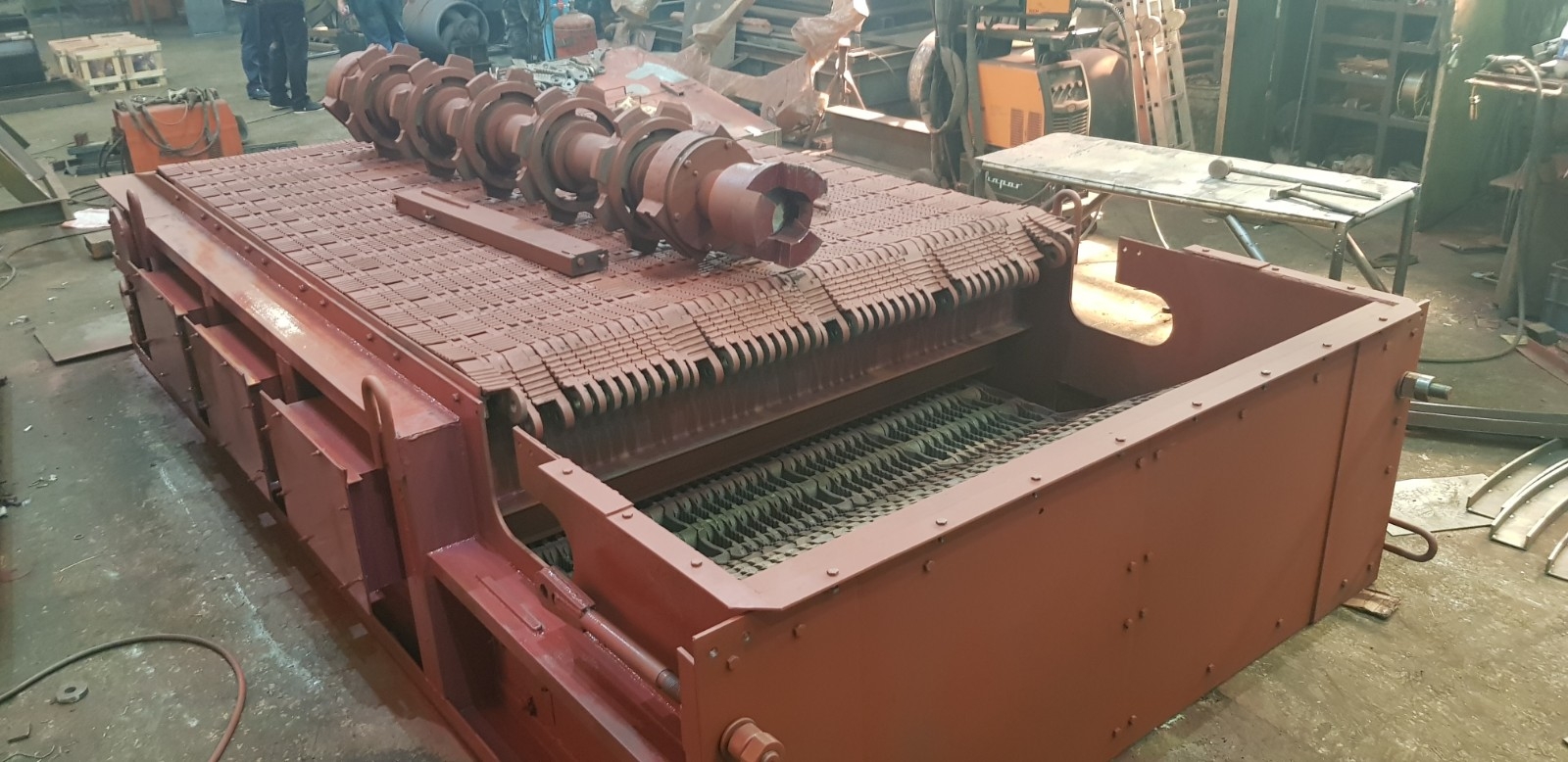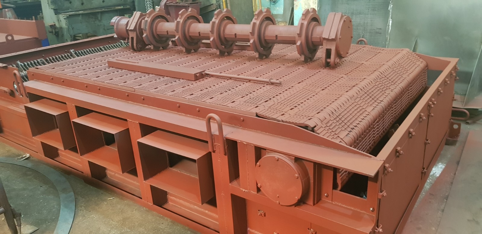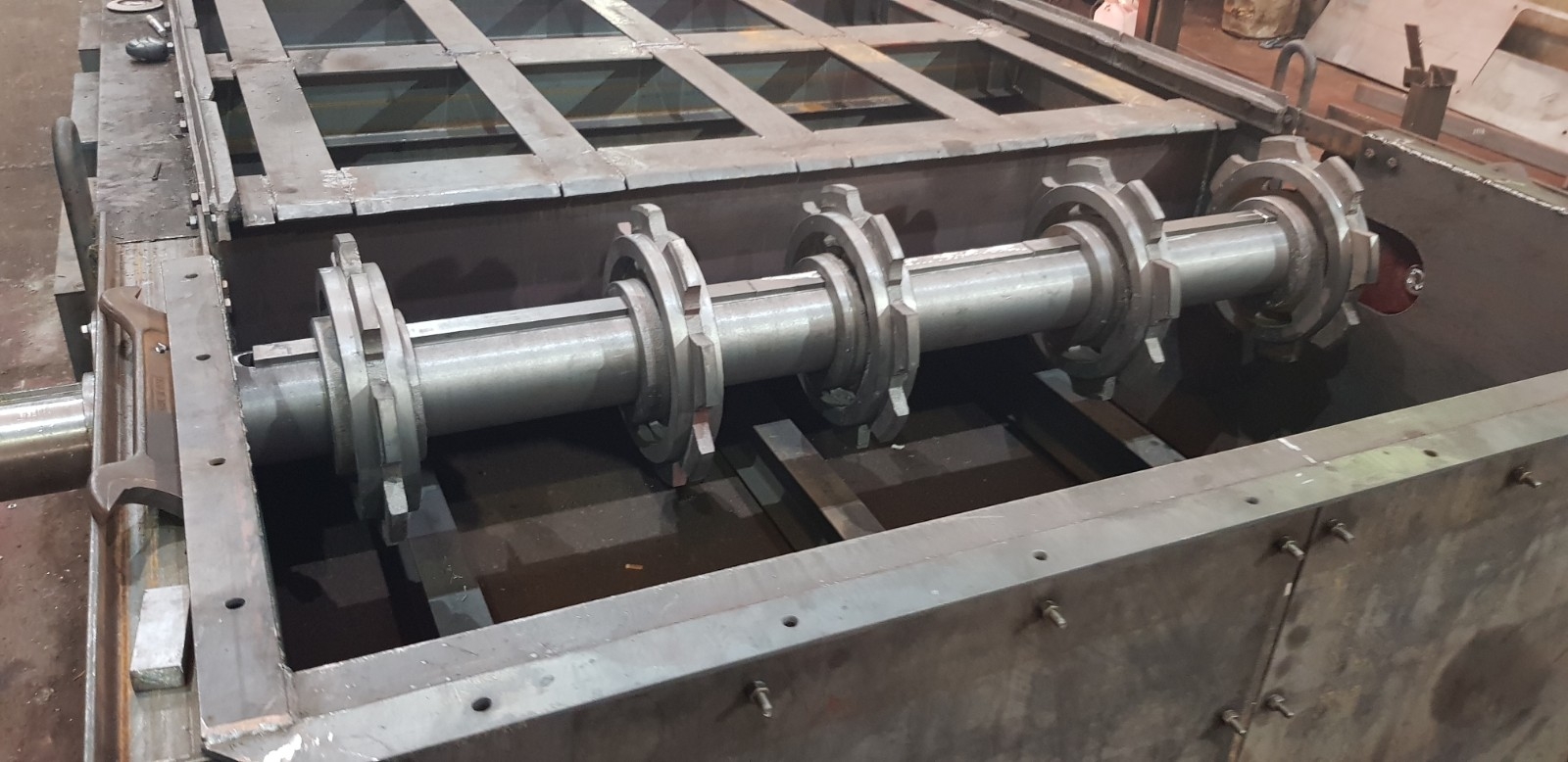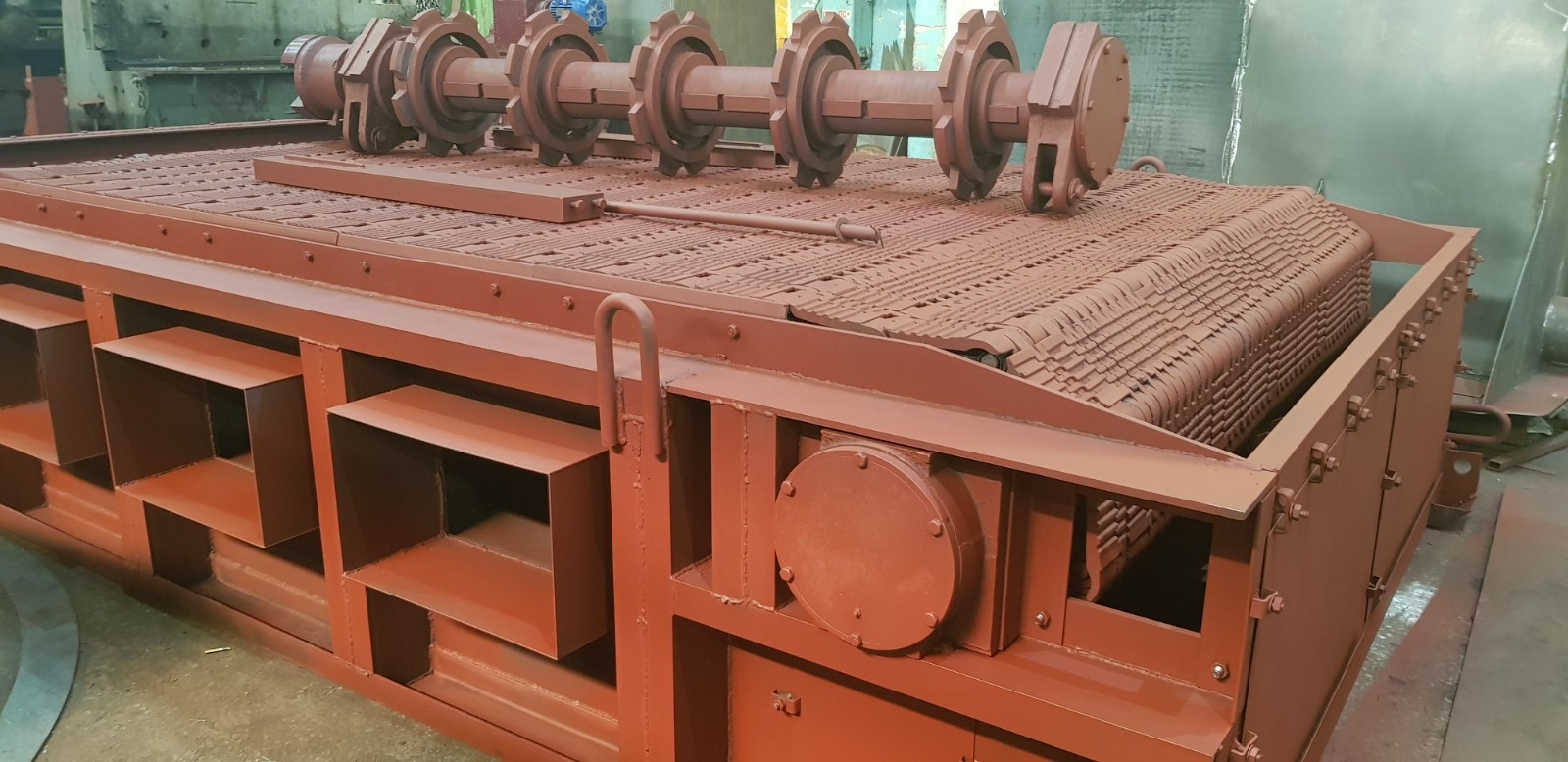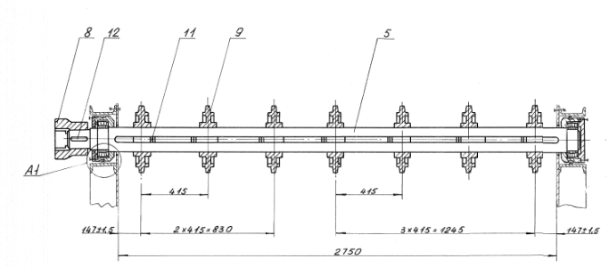 Вал передний в сборе 00.8091.001 (Т 192.02.000) используется для натяжения колосниковой решетки в топках ТЧЗМ с чешуйчатыми колосниками. Представляет собой стальной вал с насаженными шкивами, которые натягивают колосниковую решетку.